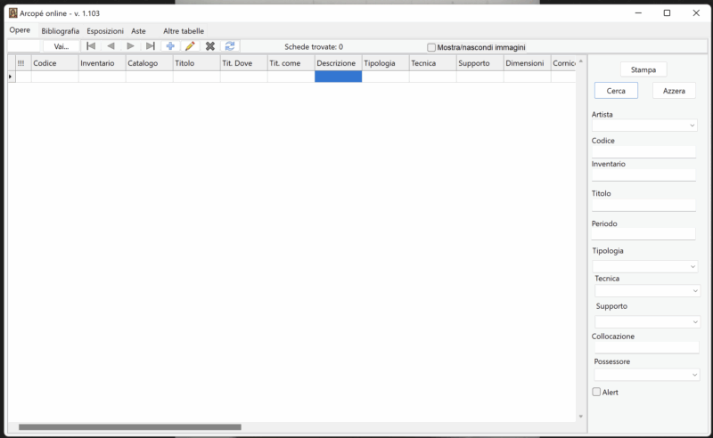 La struttura del programma è stata messa a punto a seguito di una serie di esperienze catalografiche attuate con differenti strumenti, che hanno visto un confronto serrato tra lo storico dell’arte-curatore d’archivio e l’informatico e che hanno messo a frutto le differenti specifiche competenze.